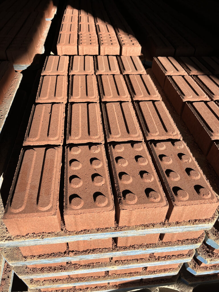 No final, os blocos e pavers passam por uma criteriosa inspeção de qualidade visual e são realizados testes de compressão, absorção de água e verificação dimensional, assegurando total conformidade com as normas técnicas aplicáveis.